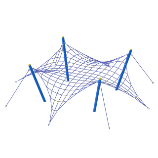 Канатная часть для конструкции "Паутина-2". Артикул Q-1076 (КН-1076). Канатная часть выполнена из армированного шестипрядного каната Ø16 мм, состоящего из полипропиленовых нитей и стальной проволоки. Х-образные и Т-образные соединения каната цельнолитые и выполнены из полиамида ПА6. Монтаж конструкции осуществляется на опорные столбы из стальных труб Ø133 мм. Монтажный набор (опорные столбы и закладные) в комплект поставки не входит и приобретается отдельно.